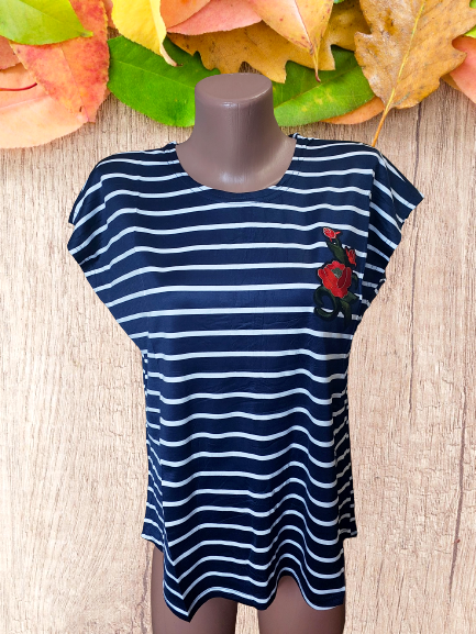 Футболка жіноча синя в смужку р.48-50. Від 3шт по 90грн
